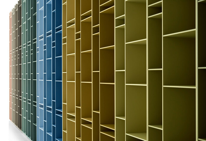 The iconic Random bookcase is renewed and the product range welcomes new modules and colours. The two dimensional variants, named 2C and 3C, make Random flexible and adaptable to all spaces in a home and to different market demands. The new elements can express unique style even if they are of modest size, perfect in small spaces or dedicated niches. Also, when combined with the Random module, they renew the collection’s modularity to create new and different configurations. Adding the colour medium grey to the classic matt white has made it possible to create different accents and to bring new value to the product’s distinctive shape. This new neutral colour makes the piece perfectly adaptable to any furnishing scheme. Another new aspect is the contrasting variant, which introduces two one-of-a-kind modules that can highlight the iconic lines of the Random collection with an interesting application of chiaroscuro imagery.