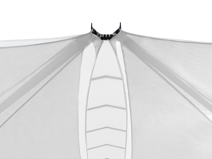 The cover consists of a top mesh which protects the system from the ingress of leaves and particles, and a bottom cover which is fixed to the frame with Sterling Steel screws at the ends of the spokes. The cover is replaceable and is resistant of fading, light and water. It is designed to withstand a wide range of all weather conditions and special connectors made from PVDF coated polyester and polycarbonate connect the canopies without gaps, to provide continuous weather protection.