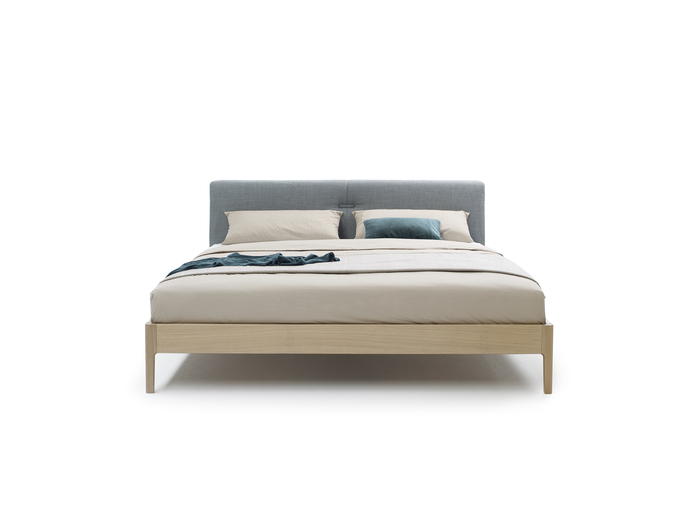 In addition to the upholstered version the bed family FOLD - GROOVE - THREAD is also now available with low headboards and an unpretentious wooden frame in oak and walnut. The distinctive detail: The legs that are at the four corners of the bed are rounded on the outside through which the bed frame comes across as being more elegant and soft.
