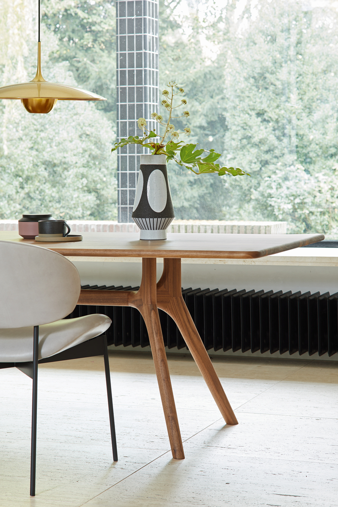 NIL, strictly speaking, is not a table, but a work of sculpture, inspired by the Tropical Modernism of the 1960s. Straight lines are replaced by organic curves, gently arched like the coronal aspirations of the Cathedral of Brasilia or the waves on the beach at Ipanema, their breaking mixed with the gentle rhythms of a bossa nova.