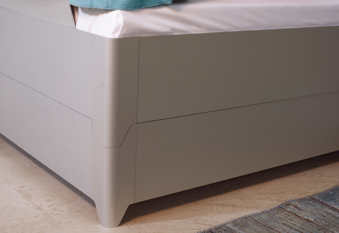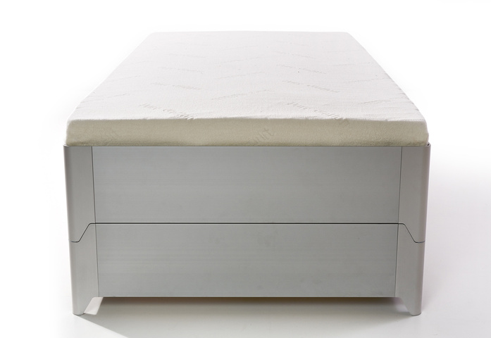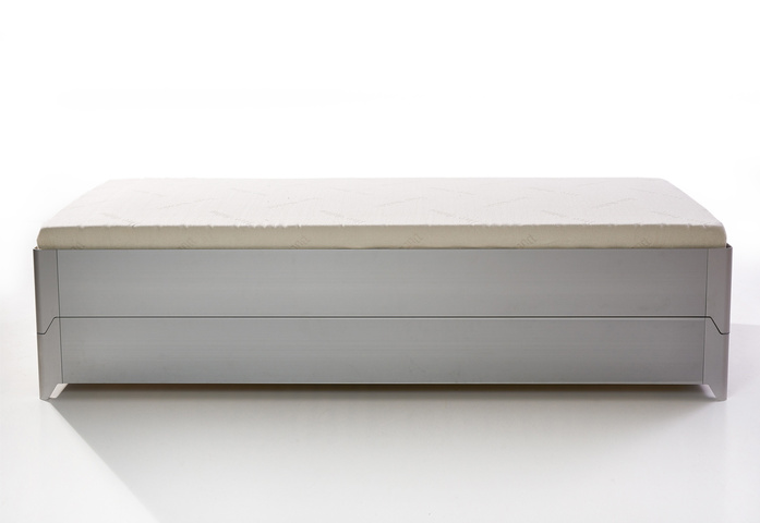 Bed frame made of aluminium anodized with plastic sliders. Optionally with headboard: aluminium core padded with foam. The cover is removable.