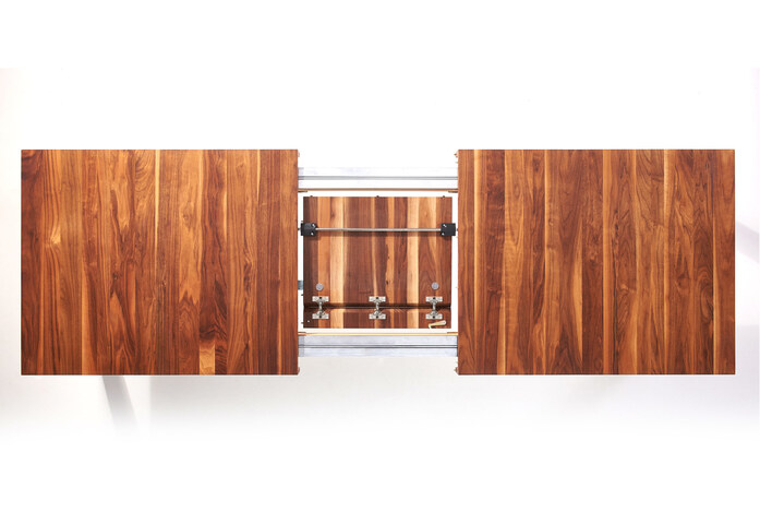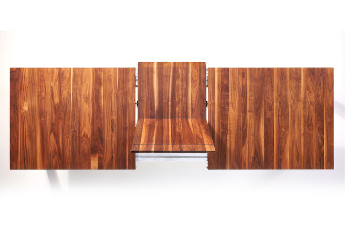 Unquestionably straight, and yet with many beautiful details. VOLTA is a pull-out table in which the proportions even when extended have also been matched to fit perfectly. For us, at its most beautiful entirely in walnut.