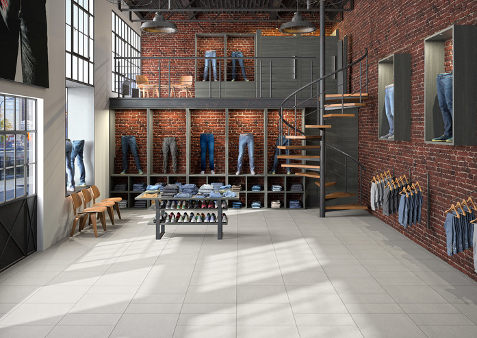 Designed to avoid direction The tiles’ rich composition, made of ceramic flakes of varied sizes and pigment tones that create random patterns and subtly different colour combinations, means that each piece is unique. Put together, the tiles create a whole that works in harmony and with ease with a variety of interior concepts. The series also includes stair treads and skirtings.