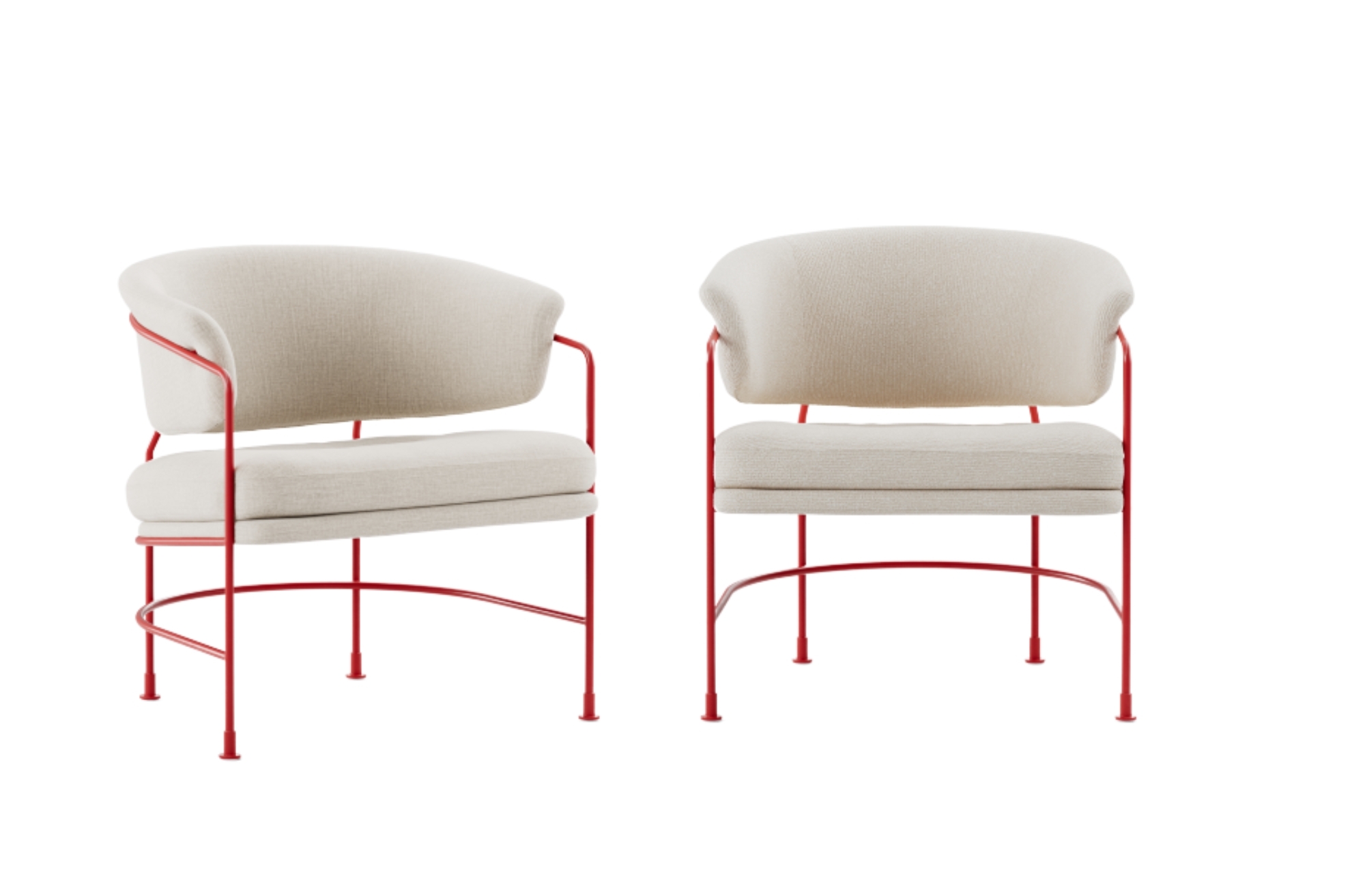 Inspired by the elegance of planetary orbits, the Astro collection features a distinctive design defined by its steel tube rings. These sculptural forms create an external frame that supports a fully webbed seat and back, minimizing foam use while maximizing comfort. The result is a refined balance of sustainability, durability, and visual lightness. With its bold silhouette and thoughtful construction, Astro offers a superior sitting experience wrapped in a sleek, orbit-inspired aesthetic. Choose from 19 premium fabrics by Romo, Kirkby Design, Kvadrat, Sahco, and Sorensen. Frames available in Pure Red, Black, or Ivory.