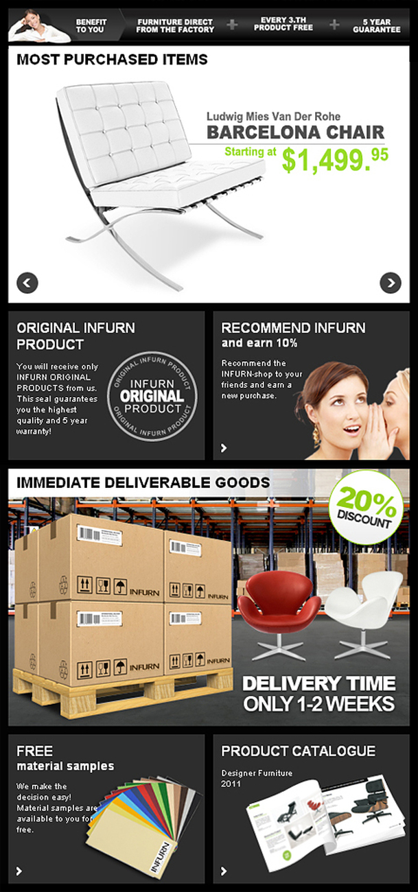 Many premium manufacturers honorably keep their action against copyists quiet, while some fight nail and tooth; yet others again raise awareness of the problem most charmingly. In the case of Cassina we find a few sentences on copyright under the heading "Authenticity". Vitra provides an entire article on the entitled "The Original" by company owner Rolf Fehlbaum. Fritz Hansen has a special menu item called "Fighting Copies" where he displays a whole host of shredded furniture copies and calls on customers to actively support the campaign against copyists.
