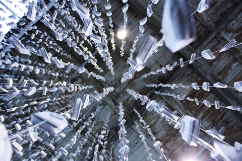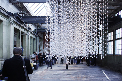 Despite our own viewpoint, we moved on, after all, there was a lot more to be seen. In a nearby old factory building it was snowing - one of the entries for the Swiss Design Prize - snow-white teabags, the classy Belux luminaires were shining, and in a session music was made with things that are essentially mute. Langenthal is, amongst other things, a charming design Disneyland and an extensive tour involving all kinds of sensations.