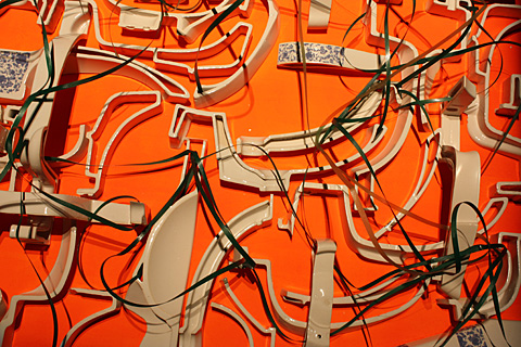 We hurried on through the halls and warehouses. This time, Vitra beckoned from a rather simple artificial turf park, where their latest furniture was set out and Dietiker had chairs from the wonderful, unbelievably sturdily constructed "Ono" range by Matthias Weber reflected in a water basin. At the same time, the fact that self-irony and a contrapuntal approach can be a wonderful thing was demonstrated by de Sede, a company whose name stands for quality, durability and leather that is as soft as a glove, by extending Robert Haussmann's "RH-304" chair to form a recamier sofa with a little table, and adjustable headrests and lamps being added to the "dS-600" range of furniture. Ruckstuhl itself presented - right in the middle of its distributing warehouse, a building worth seeing in itself - its special 2010 range, consisting of a total of 12 rug designs produced as a limited edition. Deborah Moss's contribution was a circular "Night Sky" where crystal stones on a dark felt background twinkled like stars in the night sky, in "Dessus Dessus Dessous" Atelier Oï joined together ribbons of linen and felt to make an illusionist room pattern such as was to be found in the Renaissance, and Claudy Jongstra produced a yellow cloud hand-made from felt, reminiscent of the paintings of Informal Art. Everything really cleverly done but, it has to be said, not to everyone's taste.