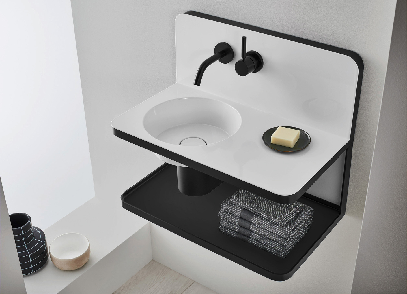 Living space in large cities is increasingly becoming a precious commodity. And today even premium living no longer necessarily spells a spread of 200 square meters. In cities like Hong Kong or Shanghai top-earning singles live in luxury apartments that are hardly larger than a room in a student dormitory. As a result, there is a growing demand for luxurious yet functional washstand solutions for small bathrooms. At ISH 2019 Alape, who has long enjoyed a reputation as a leading supplier of washbasins and washstands of enameled steel, presented this vanity unit for small bathrooms. It consists of a black steel frame and a white unit of washstand, wash basin and splashback. The three components are made of a single unit and present a harmonious whole – not least of all because the enameled basin hollow was seamlessly fitted into the washstand base of glazed steel.