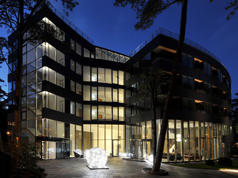 Just 50 meters from the beach, Hotel Palanga is to be found in one of the pine forests that pepper Lithuania’s Baltic coast. Architect Donatas Rakauskas embraced the entire ground floor in a full-length glazed façade, letting the wood’s atmospheric lighting and the vastness of the sea into the building and affording guests in the lobby and spa areas a direct view of the surrounding landscape. In summer the beach and outdoor terrace entice guests out into the great outdoors, while in winter the heated spa area offers guests refuge from the cold with a wonderful view of the snowy landscape.
