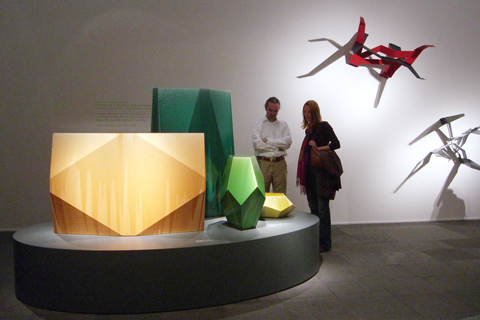 They landed in the semi-dark room, the deliberately unidentifiable objects by some forty artists and designers, objects that without exception are something in between art, design, and design art, but that at first sight are difficult to categorize. The exhibition has got a lot of things right: The exhibits are all high-quality, a representative selection was made, but it is primarily the conceptual approach of foregoing categorizing the objects and leaving it up to the observer to decide whether it is art or design, that is most effective.