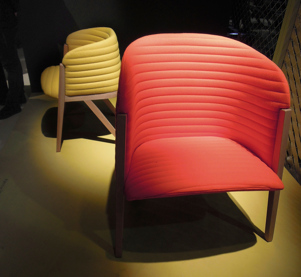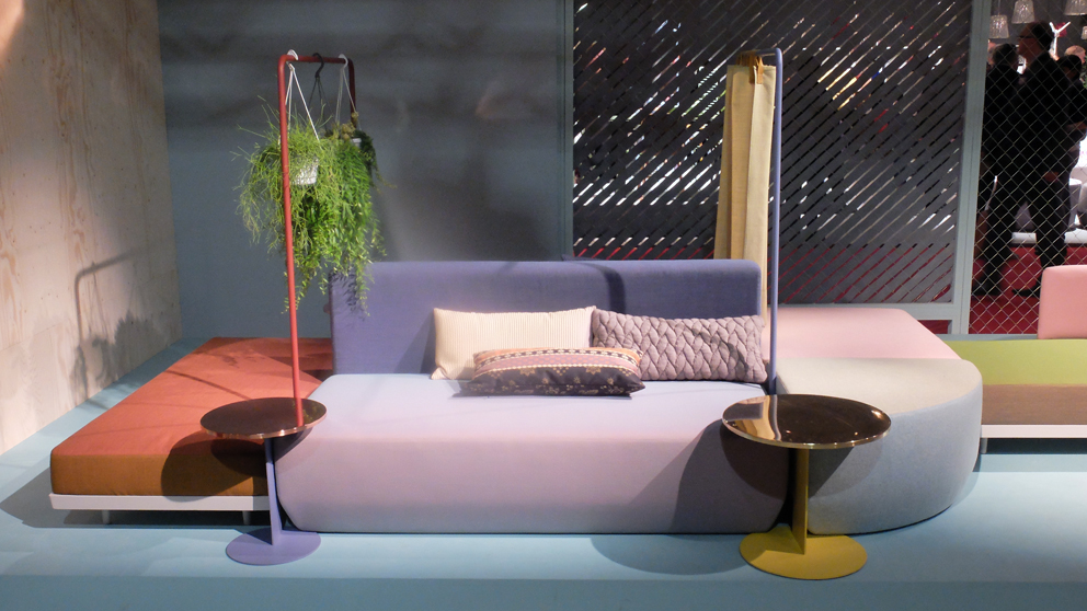 Those who wanted even more needed only go to Moroso. The booth was simply dripping in colorful new products, and was the brainchild of Patricia Urquiola. She has used color playfully in her designs for some time, and has now made it one of her main missions. Unlike at Vitra, at Moroso the eyecatchers were brightest colors, pastel hues, and unusual crossovers – Verner Panton would have loved it. For example, “Mafalda”, an Patricia Urquiola armchair, is available in highlight orange or canary yellow. And right next to it Sebastian Herkner’s “Banjooli” – an ethnic wicker chair revisited, in colors you could imagine he found at an African bazaar.