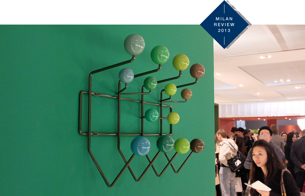 Milan – is fashion and design. A matter of cross fertilization, a matter of ever greater fusion, as could be seen not least at this year’s Salone; one needs think only of Karl Lagerfeld’s photospreads, the collaboration between Tom Dixon and Adidas or the COS show in Ventura Lambrate. And the trends cross dividing lines, too, meaning that not just fashion is colorful, but so is design. A response to the somber prospects on the sales markets? Possibly. In times of economic uncertainty, maybe design goes color, following the lipstick index – according to which women in times of crisis love to go for red lipstick. Because powerful warm reds and oranges as well as tender pastels are said, in purely psychological terms, to stimulate and brighten the mood. And not just that. Alongside the many redesigns the “classics in new colors” are of course a comparatively low-risk way of playing the innovation game. And in our saturated society a choice set of colors is one way of standing out from the masses. Following all the non-colors that dominated homes and clothes in recent years perhaps we sense that we’re just thirsting for color. Whether the entire room has to be pink is another matter. The “Hang it all” in nuanced greens will certainly do, first up.