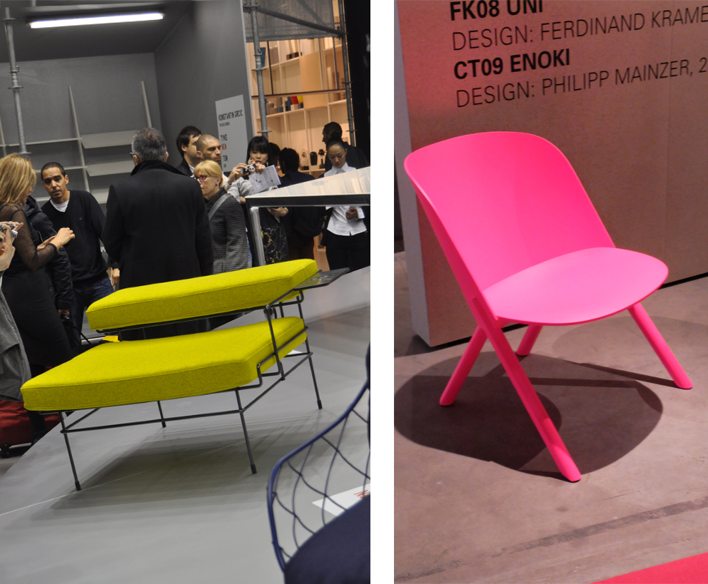Incidentally: the extreme swirl of color to be seen last season seems to have calmed down somewhat. Both in design (and just Philipp Mainzer thinks this) but also in the world of fashion. On the catwalks loud colors are only a matter of highlights. Pastel tones remain as the summer favorites. Add to which there’s a lot of green as of the summer – Pantone’s no.1 for this year is “emerald”. That said, the latest message coming out of the catwalks in Paris, Milan and New York for this winter is: completely white or all-in-black. Meaning that we also all know what to wear to next year’s Salone – great, one less thing to worry about.