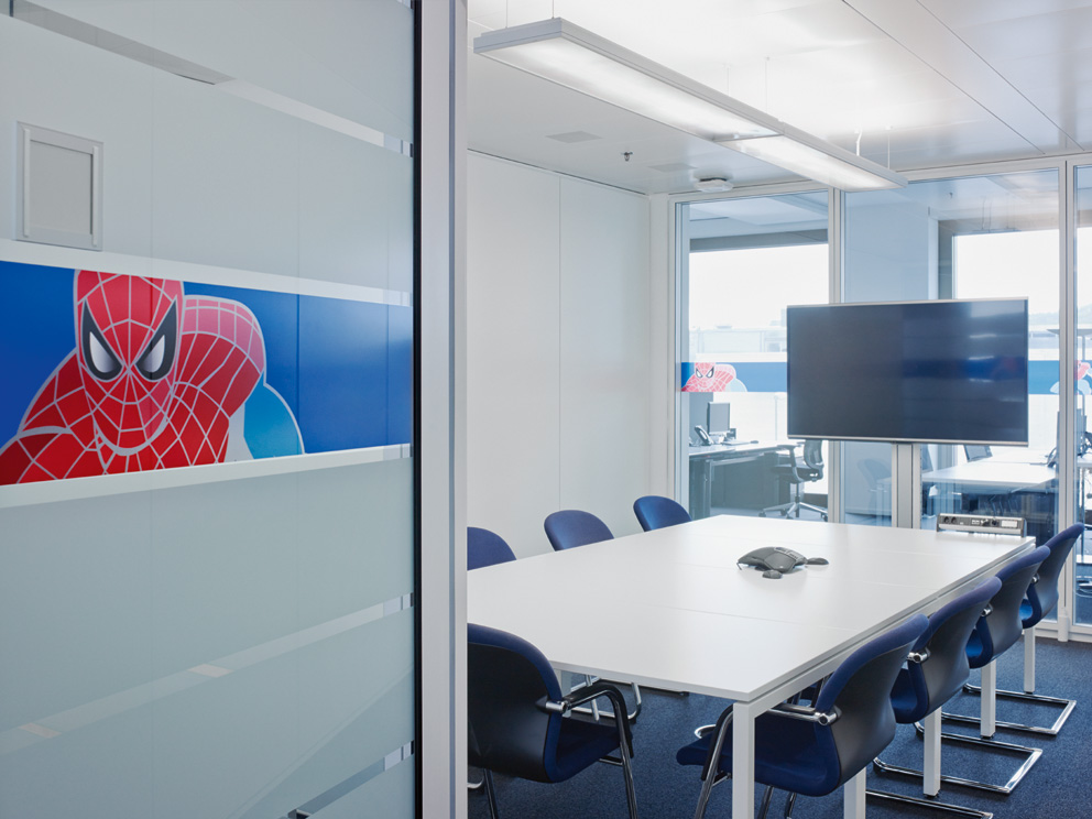 Charlie Chaplin greets Marilyn Monroe: Management opted for a colorful and playful look to the room for presentations. Photo © Lista Office LO