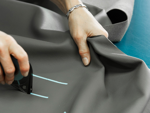 Leather hides are surveyed and any defects flagged up, so that they can be eliminated during the cutting process, photo © Vincent Leroux