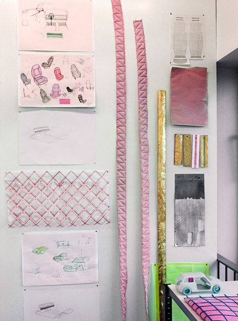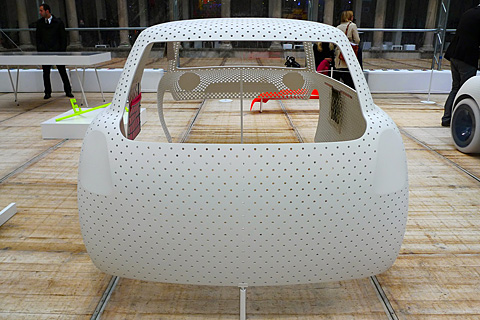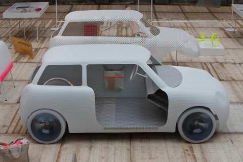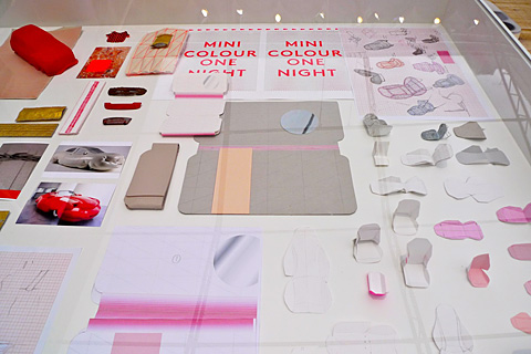 The installation by Scholten & Baijings for Mini was most definitely one of the aesthetically most pleasing presentations at this year’s Milan Design Week but it was also one of the most cryptic. This wasn’t about creating a concept car, built purely as a bombastic demonstration of a manufacturer’s progressiveness, never destined to go into production. Instead it was a poetic and inspiring examination of the theme, which playfully unveiled hidden beauty, questioned the functions of the each component that makes a car and kept their conceptual ideas just that, concepts, without immediately inquiring as to reason and feasibility. After all, according to Carole Baijings what the automotive industry considers a concept car is not a concept at all, but a finished car. In contrast to the end-to-end concept cars to be seen at the automotive trade fairs (with their infinitely repetitive demonstrations of progressivity, dynamic, strength and power) the installation by Scholten & Baijings actually offered a free space where you could dream up your own connotations, reflect upon the design process, upon the past and future of the marque. And above all the show granted subjective and emotional access to the properties that may shape the value of a car in the future.