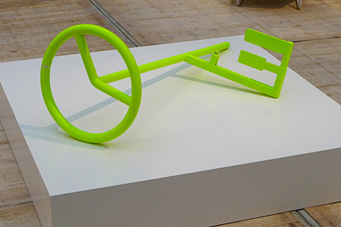 In this way, presented beneath the pavilion’s transparent roof, the individual components look like shimmering insects in a display cabinet. But depending on who one spoke to, the presentation evoked connotations of the object layout in a “car clinic”, a padlock, a scientific decoding of some creature’s DNA, an enormous three-dimensional sketchbook, a colorful hodgepodge of precious items taken from a cabinet of curiosities, or an oracle bone, whereby the fleshless objects revealed a bizarre beauty and in their new arrangement afford a view to the future.