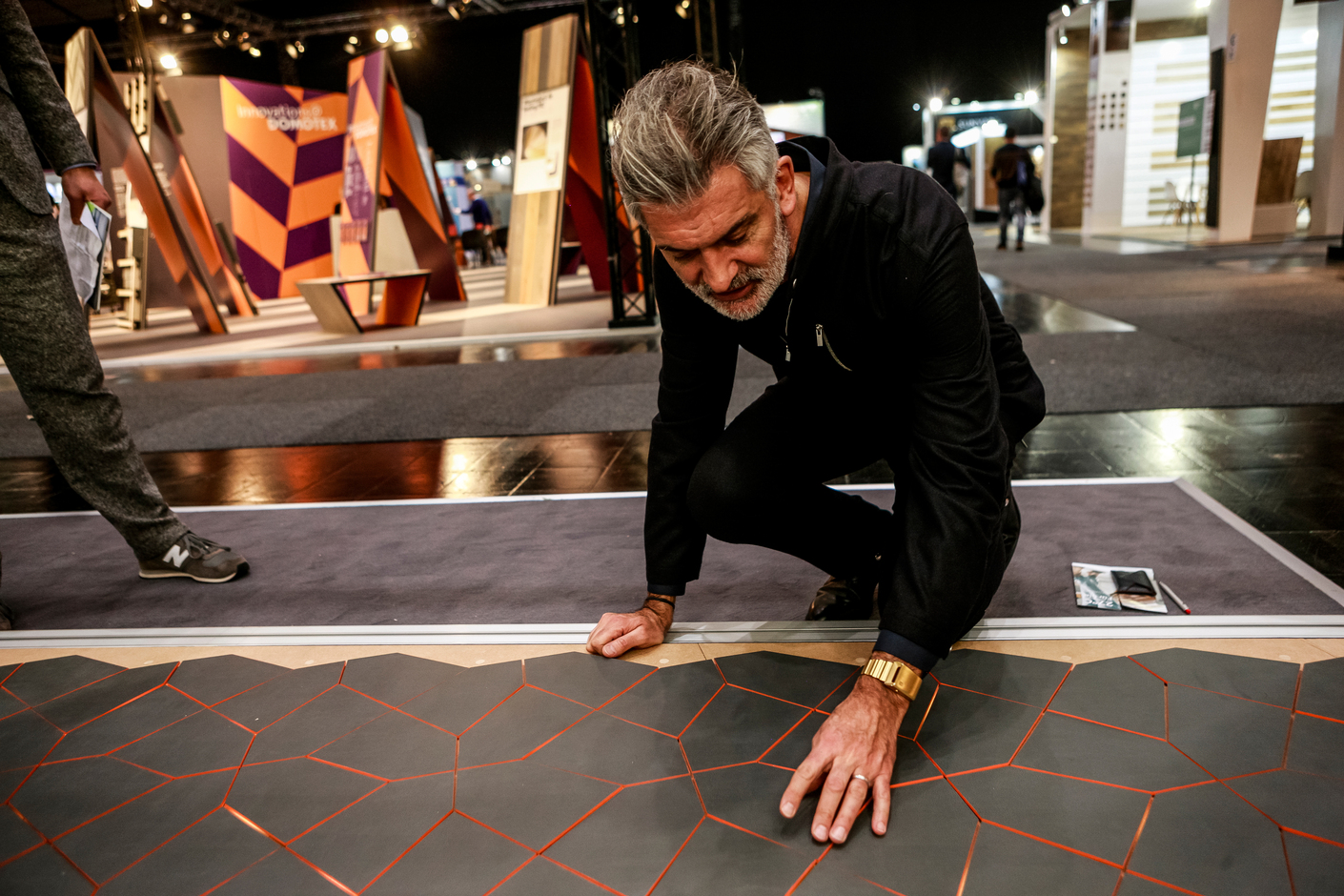 A great deal of exhibition space is made over to carpets at Domotex, which form a world of their own. Hossein Rezvani: “I am the only person in these halls exhibiting traditional Persian carpets in modern designs. To mark our eighth participation at Domotex we have launched a limited special edition featuring ten designs. Carpets from India or Nepal typically have 200,000 to 300,000 knots per square meter. We begin with 400,000 knots. Our finest carpets have 1,000,000 knots per square meter. Worldwide, we are the only firm to offer such quality combined with a modern design. Such a piece is made up of six million knots fashioned by hand. That takes two people seven months. Initially it was difficult to realize our concept, because nobody was prepared to break with traditional designs, go abstract and do something different. Despite the change I like the fact that you can still tell where the carpet comes from.”
