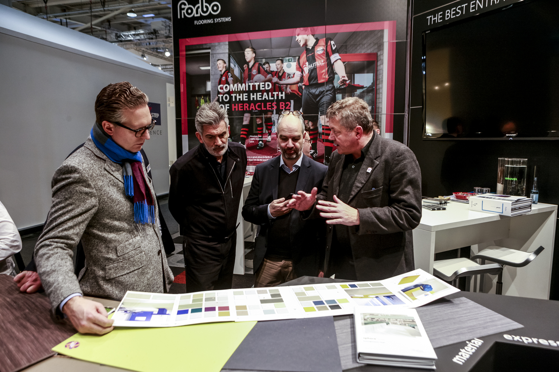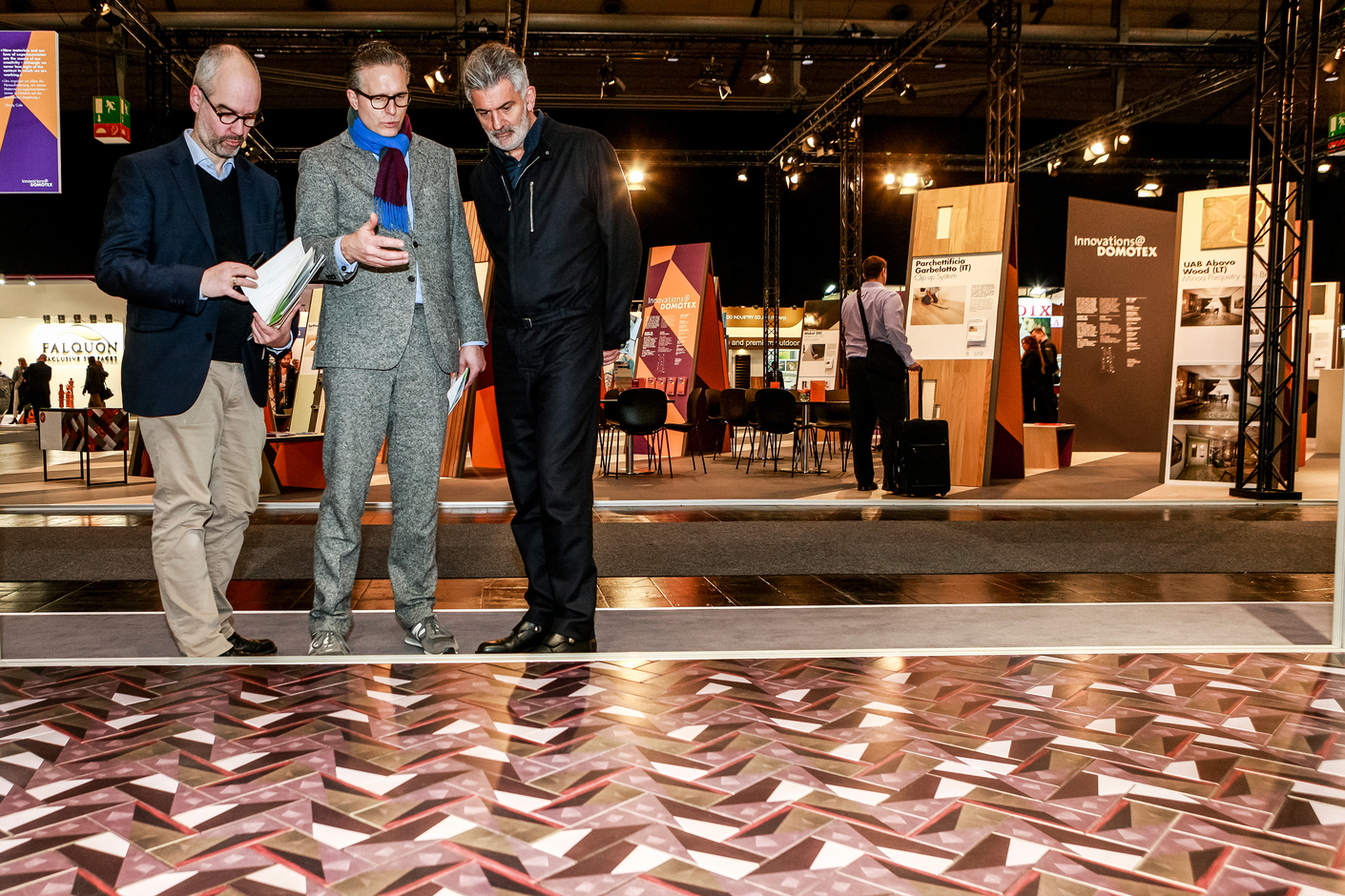 During both his participation in the panel discussion with Martin Haller from Viennese studio Caramel (moderated by René Spitz) and several guided tours he imparted his own personal views on the topic of floor coverings to an interested trade audience – and always with a touch of irony. Afterwards, he had several products demonstrated. First, we made for the manufacturers of carpets and elastic floor coverings.