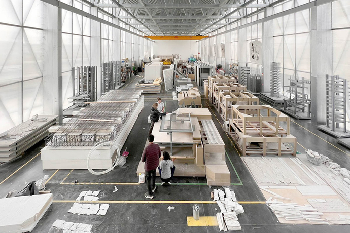 García-Abril takes an eagle’s perspective on the profession: "Here the architect who in recent years has been reduced to doing graphic or decorative work returns to his original mission – one that is very complex but also very necessary for society, namely the construction of physical space, something that is needed to lend structure both to life and architecture." The philosophical idea behind this is the awareness that all architecture comes from the earth, the building materials are extracted from the earth and then worked, stacked, joined and transformed by people in fascinating ways into spaces worthy of being celebrated, discovered, and inhabited. This development involves our striving for efficiency, subjugating matter, and developing methods and tools to work the stones, fibers, and metals. Advancing this idea in today’s world means moving away from customary local traditional small-scale construction output and introducing the most advanced technologies of digital manufacturing, automation and robotics into construction processes so as to achieve the quality, efficiency, perfection, cost-effectiveness and safety that have long been standard in other technical sectors. Precisely that is the mission of WoHo Lab.