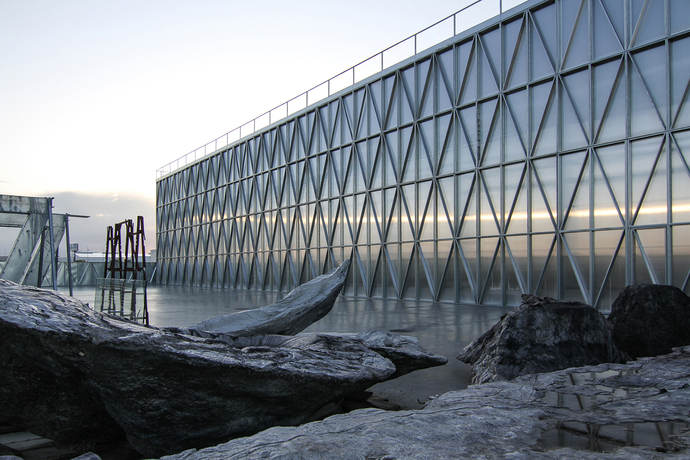 When a Spanish architectural office calls itself "Ensamble Studio", in other words bases its name on the noun derived from ensablar, meaning to assemble or perhaps more precisely to join, you would think it were primarily concerned with building as construction. What has been connected can be recognized by the joints, by the visible connections – the structure is fully exposed. You need only think of Richard Buckminster Fuller, Jean Prouvé, Charles Eames, or for that matter the masters of the Late Gothic period for whom the precise joining of fragile stone structures was essential and indeed a prerequisite for tectonic stability. The new Ensamble Fabrica prototyping facility and fabrication laboratory in Madrid seems to illustrate this credo quite literally: a delicate looking steel-and-glass structure of impressive stringency. However, what makes it stand out from the mass of equally straightforward but decidedly lackluster industrial buildings is the highly fascinating contrast between the large geometric cube shape and the filigree network of the structure that is simultaneously the facade. Instead of a few large, powerful cross-bracing elements to give the load-bearing structure rigidity, the architects opted for slender diagonal elements distributed evenly over all the areas. This conscious design decision transforms the highly rational building into an artefact.