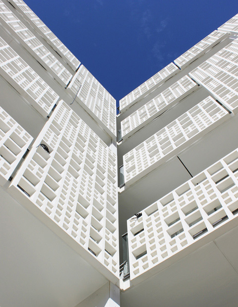 Alongside the color white, the fibreC 3D façade elements can also be supplied in other colors. Photo © Rieder, Rasmus Norlander