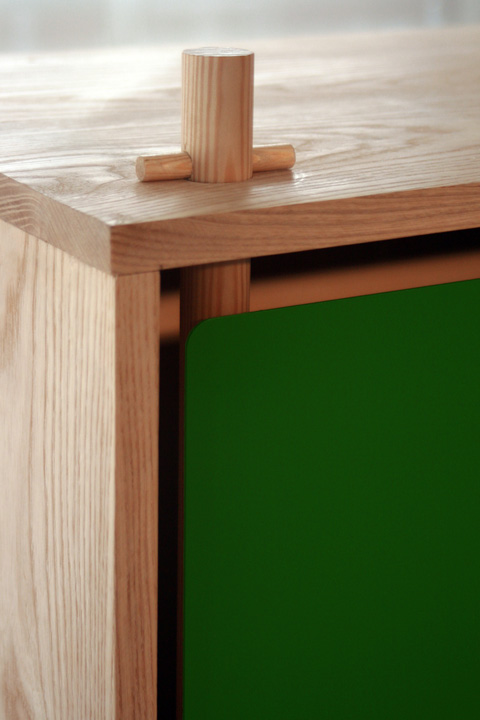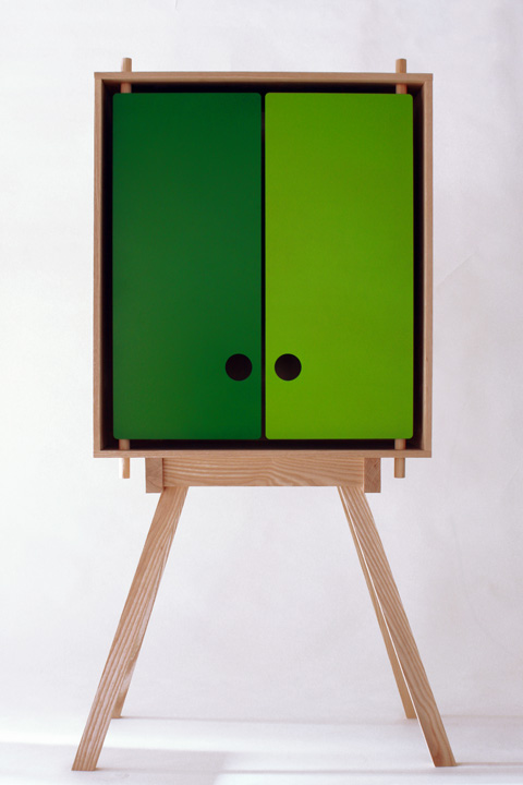 "Lantern" offers a convincing mix of clear aesthetic and ingeniously simple technology. Hahn combines materials used in mass production with a simple mechanism and yet finds a new interpretation for both. The principle is to be encountered in many of his products: "My roots are in industrial design, so I always have industrial production and functionality at the back of my mind when designing something," he explains. "I explore simple materials and techniques, and fundamental mechanical systems, and then create new contexts or interpretations. The result is often objects for everyday use that have a clear function but also come with a streak of humorousness or naivete. That gives them the human touch!" In the design process, Mathias Hahn marries functionality and applications with his natural curiosity and intuition. "The honesty of the material, the construction and the shape are important to me," he professes. And you can see this in his objects: They hide nothing and are self-explanatory. For example, "Wooden Chair" or "Odd Cabinet"; in both cases, Hahn highlights the structural connections. Or his "Scantling Lamp", which exploits the friction in the joints to be lockable in any position.