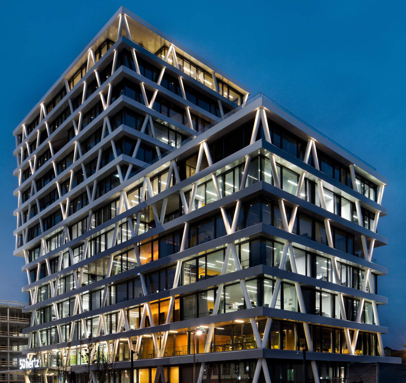 Spotlights merge into jagged light: as soon as it grows dark in Berlin’s Europacity district hundreds of spotlights by ewo illuminate the new company headquarters of 50Hertz Transmission GmbH. In simulating an alternating current curve on the office facade it visualises the work of the network operator, who is responsible for the smooth transmission of electricity to Hamburg Berlin and Hamburg, Berlin and Eastern Germany.