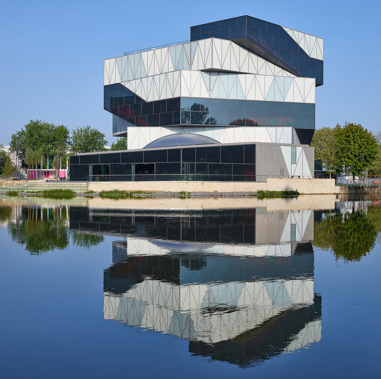 Do you know what to take into consideration when building a dam wall? How to suspend gravitational forces, or how a drop of water falls? Answers to these questions can be found at the Experimenta Science Center in Heilbronn, located on the banks of the River Neckar. In order to facilitate the journey of discovery through the sciences, Sauerbruch Hutton Architekten have added a dynamic new building to the existing structure: Multi-story blocks in irregular pentagon shapes have been stacked and enveloped by a facade divided into triangles. Inside, the atrium rises up to the fifth floor in a spiral shape, linking the different topic areas. A great deal of daylight, slanted ceilings, and changing didactic exhibits set a very high standard for the lighting solutions to be implemented. Maierlighting in collaboration with Zumtobel therefore set out to develop special luminaires that are able to flexibly adapt to changing situations in the space. “Zumtobel is known for developing high quality solutions,” says light planner Jens Maier.