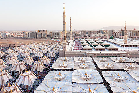 250 flexible shields are shading the Piazza surrounding the mosque of the prophet in Medina. Photo © SL Rasch