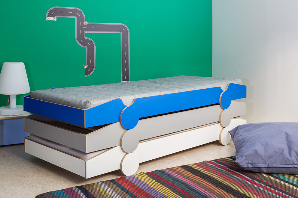 Parents will no doubt choose the tough model and it’s bound to remain all the rage with the kids even when they’re teenagers. If their preferences change, then the bed accordingly adjusts smoothly. It quickly turns into a resting place for guests staying over, either one on its own or several stacked. Childcare centers also benefit from these stacking qualities – there’s a version with a narrower mattress specially for those shared afternoon naps. “Speedoletto” will no doubt take pole position in the race for the German Design Award 2016. (uma)