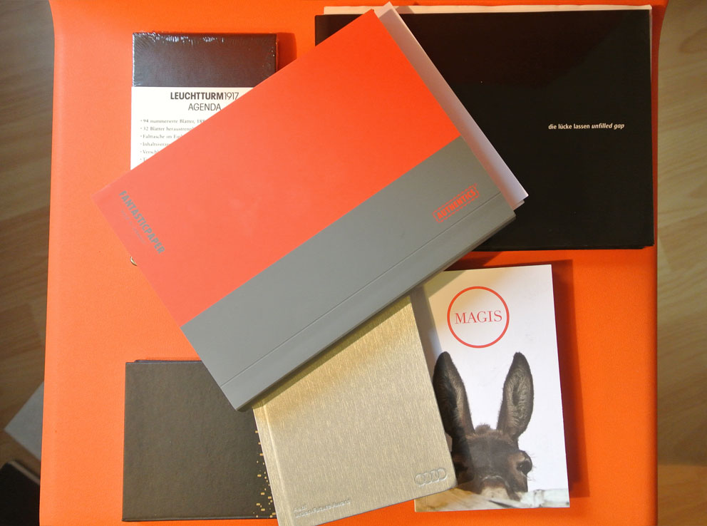 Architects, artists, writers and journalists seem to prefer an analog medium in this regard. A notebook. A small one, lower case, often sized A6, ready at hand in a jacket pocket, in which you can then jot down or draw whatever seems worth recording – a marvelous habit that allows you to get a clear view on this or that. Be it a small exercise book or a thick notebook, the proven counterpart to the Smartphone or Tablet PC doesn’t need a battery, recharging, or an uplink to the Cloud. You have everything with you, all the thoughts you are playing around with, your ToDo lists, and all the other stuff you write down; you can leaf through it this way or that, and find things you weren’t looking for. And when leafing through old notes not rarely you come across good ideas that got forgotten and are possibly worth revisiting. With your notes before you, new ideas start bubbling up or bubble back up.