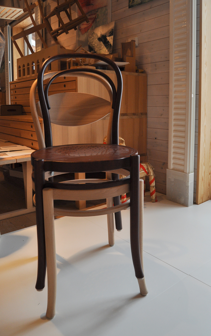 Axelsson picks up an antique-looking chair with spread-away feet that remind us a little of Bambi's first attempts at walking and places it on the table. With a muffled voice and curious, alert eyes, he explains how everything began, with him and the chairs. Åke Axelsson was born in 1932 to farmers in a small village in the Småland region of southern Sweden. He had seven siblings and grew up in poor circumstances. Only if you did something physically could you achieve something, he says. His primary school teacher discovered his craftsmanship and so he went to the state crafts school in Visby, where he was trained to become a "Möbelsnickare", a carpenter. Axelsson moved on via Munich to Stockholm, where he studied at the Stockholm "Konstfack" to deepen his knowledge of furniture and interior design. Immediately after his training, he was lucky enough to be able to work with the Swedish architect Peter Celsing on the design of the Stockholm opera restaurant "Operkällaren".
