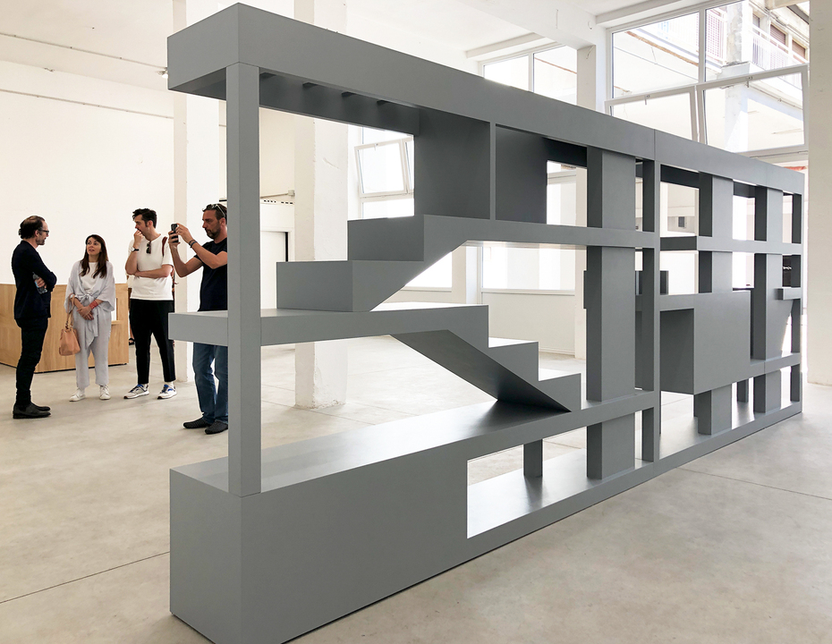 Konstantin Grcic: That too. "Wall" is as big and deep as a wall, looks like the raw core of a building. But it is a large, open, changeable structure. You can recognise levels, a staircase, perhaps the underground car park with supports at the bottom. There are utility shafts running through it. But even if I describe it like that now: That was not the leitmotif in the design process. Nevertheless, it looks like a scale model of a rather large building. And yet it is a piece of furniture...