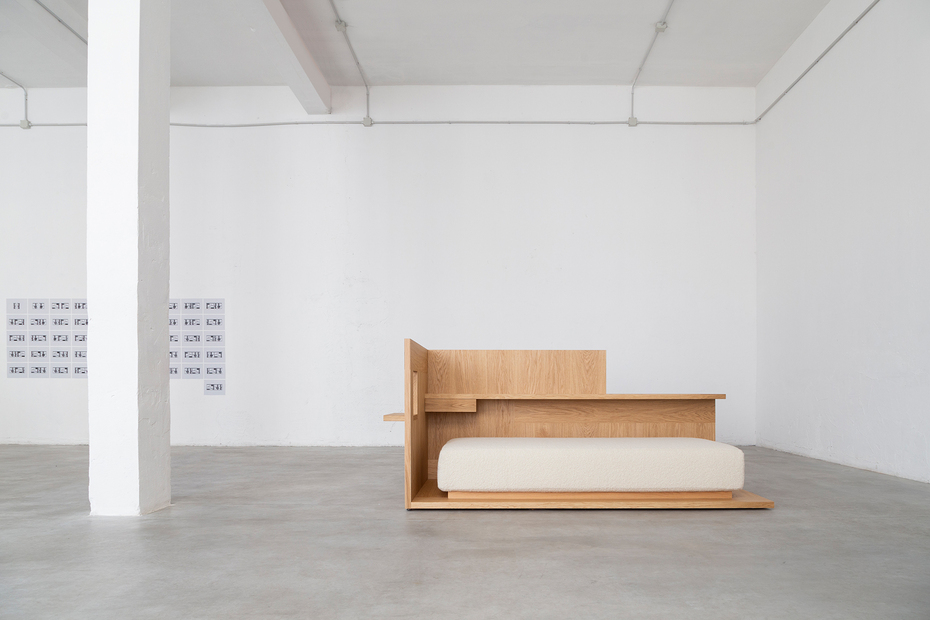 Konstantin Grcic: If you walk around this stage, all you need is a chair, then you have a workplace. Although the structure is closed in itself, it offers openings, establishes relationships. That is also because it is not particularly high. You can withdraw into it. In this very large exhibition space, you don't feel the proportions so clearly. Because compared to some current sofas, "Daybed" is not really big. And yet it is something quite different when you think of the sensation of moving around in a room within a room.