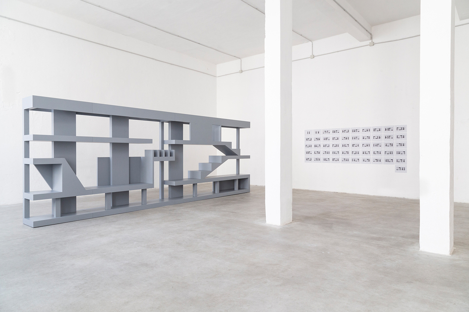 Konstantin Grcic: Exactly, there is the design of a standard skeleton building "Dom-ino" by Le Corbusier from 1914. For me, that was always an important point of reference. Then Rem Koolhaas showed it at the Architecture Biennale in Venice as a replica made of wood. That would actually be the clearest quotation, the closest point of reference that I use here. At the same time, you can also see it as a shelf or as a display. Or as an architectural element in a room, a separation. Accordingly, "Wall" also has two different sides. And that explains the drawing: there are three elements, A, B and C, one, two and three metres wide. The front and back sides also differ spatially. On the computer we went through all the possibilities of putting the three elements together with their two sides. The drawings illustrate this. In the exhibition, we don't start rearranging the elements. And yet there is a lot of play possible. Who is it for and what is it? I can't tell you!