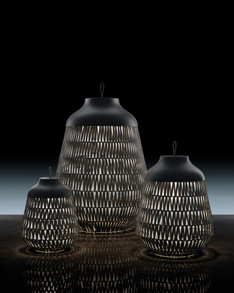 While camera optics and objects served as formal inspiration for the ‘Focus’ projector, ‘Kinno’ is reminiscent of a mushroom growing upwards, “Reed” stretches upwards like reeds, and ‘Chelsie’ is an elegant ground floodlight that creates sophisticated lighting effects and is also avaible as a compact step light. For the ‘Stitch’ lantern, metal and fabric are woven together to form a decorative pattern. The lights were created by estudi{H}ac, Lodes’ in-house design team, and Patrick Norguet, who has made a particular mark with three designs.