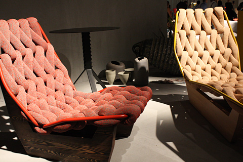 By way of example, the idea for “Biknit” came just one month before this year’s Salone. Nonetheless, Patricia Urquiola and Moroso not only opted to show the lounger at the upcoming fair, but also to assign it an especially prominent position right at the entrance to the stand. Karmelina Martina, the product developer responsible, speaks out in favor, and with a convincing smile, of presenting products during the development phase. She supports the idea of a “transparent” company. Everyone should be able to see what is going on inside the company. She hopes “Biknit” will be available to customers in around a year. Normally, the development of such products takes between several months and two years. The main reason, she argues, why a prototype occasionally does not make it on the market is the price. Alongside “Biknit”, Moroso showed many more prototypes in the front of their stand, such as the “Moon Chair” by Tokujin Yoshioka and the “Impossible Wood Chair” by Doshi Levien; the rear of the stand and the VIP area were made over to products of recent years that are now available.