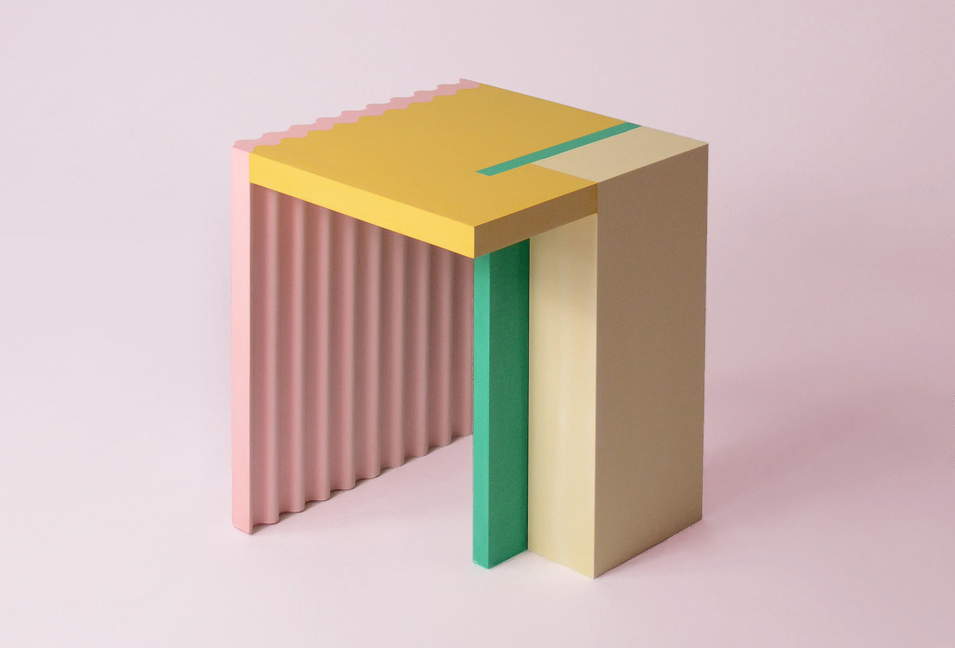 Gratings, pipes, paving stones - Kathleen Opdenacker and Jef De Brabander from the design studio Nortstudio were inspired by building materials to design a bench. "Urban Shapes" lifts material and form out of their context. The individual elements made of wood or anodised aluminium are connected to a steel grid that can be moved flexibly. The graphic effect is enhanced by the colouring: the stereometric basic shapes and grids are each single-coloured. To maintain the brilliance, no black is added to the pigments. The heterogeneous combination plays with the contrasts. The modules of the "Graphic" side tables made of acrylic also have a different structure and colour.