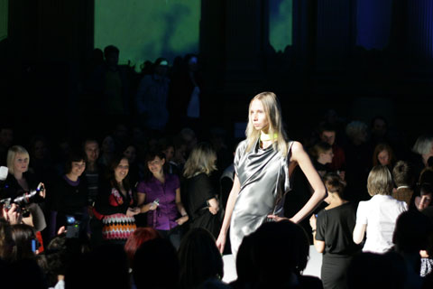 Right at the entrance the first people crowd around the stand of Thanh Thuy. The fashion designer creates favorite items you can't help but notice: the casual, slim-fit hooded pullover is greeted with great approval. The fine pleats add a touch of refinement to her urban streetwear look and the unusual collars promise a new trend. A little further on "Lydia in St.Petersburg" (or rather Susan Krieger from Halle an der Saale) presented her first handbag, briefcase and traveling bag collection. All the bags are inspired by the good old midwife's bag and just looking at them conveys the impression of the country physician rushing to the rescue. The jury at Designers' Open promptly decided the combination of hand-made patterned wallpaper and roomy work bag was worthy of a prize.