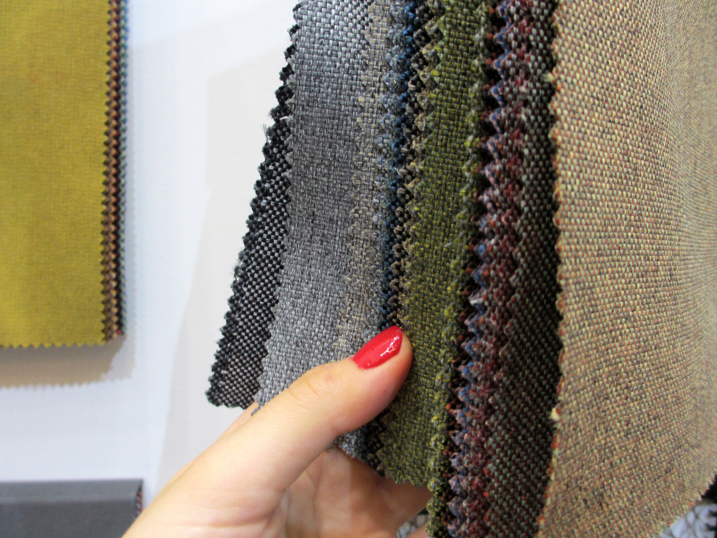 While subdued tones dominate with the Brits at their exhibition stand, things look more colorful at the other booths. The floor coverings by Swedish manufacturer Bolon and German firm Object Carpet boast diverse patterns and huge variation. At Bolon all production steps take place in the factory in Sweden and the waste products from fabric production are recycled on site in the firm’s own plant. The two-layer flooring is made from equal parts of recycled and new fibers.