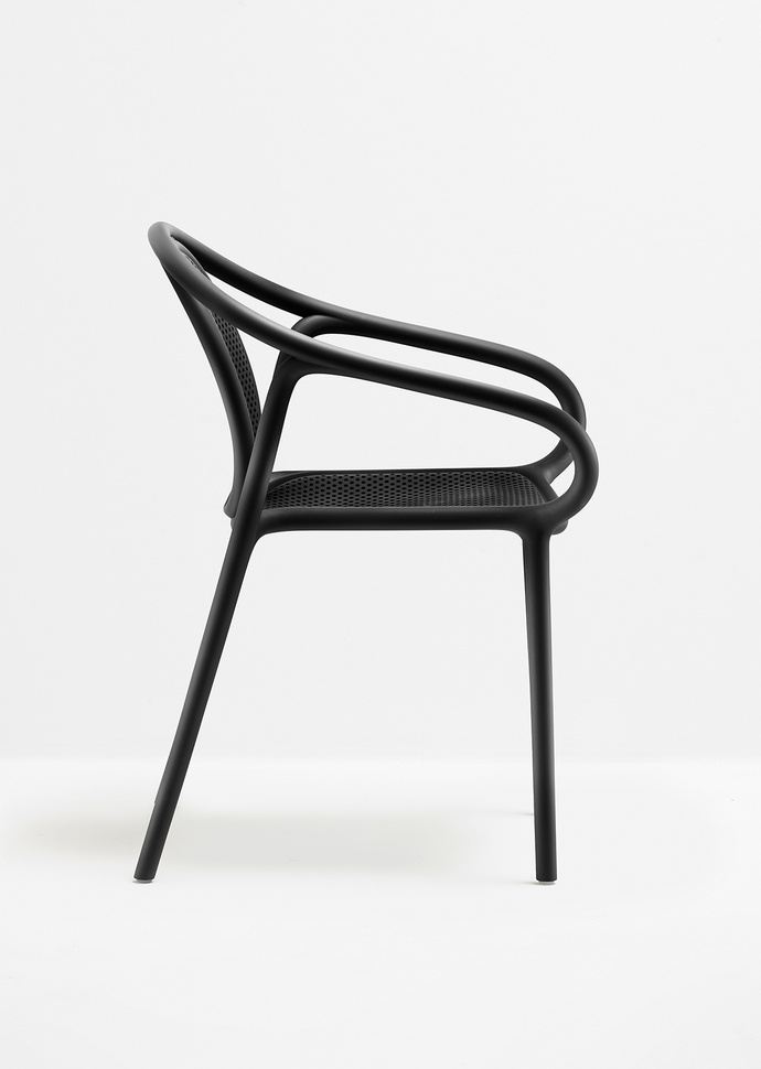 Eugeni Quitllet: “Soul” was conceived for interior spaces. I had the opportunity to bring two types of knowhow together here: Pedrali has a great deal of knowledge when it comes to processing, both wood and plastic. The transparent polycarbonate seat breathes life into the chair and references modern technology. The curved structure made of light ash wood on the other hand stands for traditional craftwork. At the same time, the wooden armrests are pleasant to the touch. The chair has a soul, it is sculptural and practical.