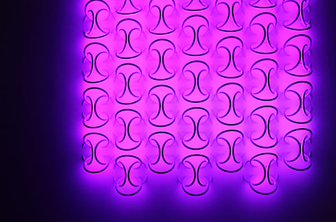 This is no swan song, on the contrary. If the walls, stairways and oriels supply the light, then the luminaire only has to fulfill the nicest of all tasks: It simply has to be beautiful. And thus trade fair visitors found themselves standing amazed before Ron Gilad's "Wallpiercing", for example. Countless rings radiating inwards decorate and entire wall, and you invariably find yourself imagining what this would look like on an even larger scale, say the facade of a high-rise.