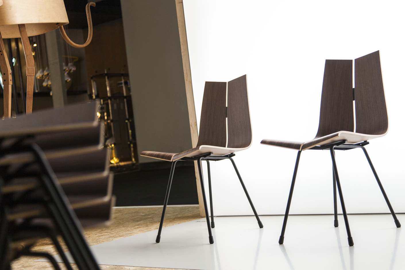 Horgenglarus has a tradition of quality and constancy. Alongside the re-edition of Hans Bellmann’s 1953 “Studio Table,” which if compared with the Arco version gets by without a heavy cast-metal frame and thus looks far lighter and more refined, the Swiss chair and table makers are presenting other Bellmann designs from the 1950s. These include the “Single-Point Chair,” a milestone in Swiss design history and the zenith of Bellmann’s oeuvre: The plywood seat is attached to the frame with a single screw through a central opening that gives it a slight springiness.