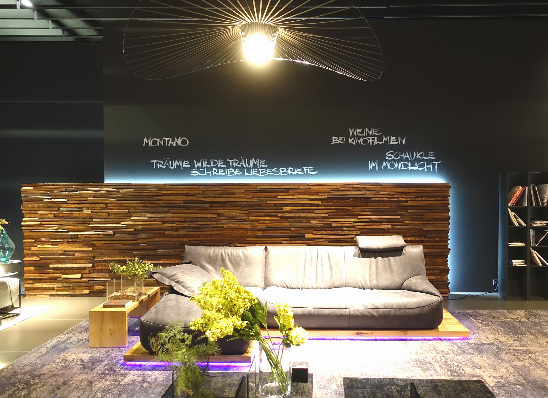 Moreover, we not only seem to be standing on the shoulders of giants in terms of intellectual reach, but ourselves to be titans. Or at least, and this may above all have to do with lounging about on luxurious sofas, many manufacturers in the upper segment of the market proudly presented seating worlds in which you might easily be forgiven for feeling like a Lilliputian who has been banished to the land of giants. The buzzword here is XXXL. Evidently, for many status is first and foremost a matter of sheer size. Make ... great again? Something that, despite the general uncertainty, thanks to Mario Draghi and the ECB an increasing number of people are willing to pay for. Housing shortages in the conurbations? Nonsense. Never heard of such a thing. At many booths what we witnessed was that we little people simply often get lost in the immense reaches of these huge sofas, into which almost as a matter of course a récamière is now integrated, the way they do in their feel-good bubbles.