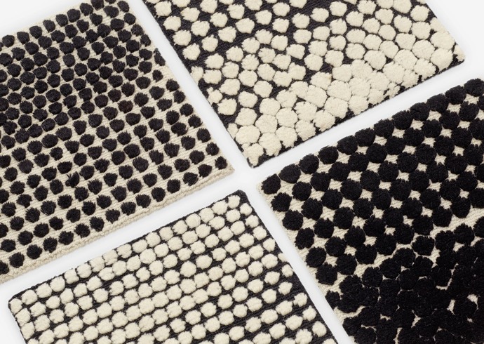 The Moooi showroom was opulently floral in tone, celebrating an “extraordinary life”. A celebration cries out for any number of lush blooms and Marcel Wanders gave them concentrated form as a carpet pattern – they even grow under the table feet. The spectrum runs from the full blossoms of “Eden Queen” to the morbid beauty of “Fools Paradise”. This wonderland also included the kaleidoscope effects of “Utopian Fairy Tales”, courtesy of Noortje Eekelen, and the big city colors that Neal Peterson transformed into round mandalas. Less strident, but no less rhythmic tones were presented by Nanimarquina, the Brothers Bouroullec and Salem van Swaagh – at times together: Ronan and Erwan Bouroullec developed the “Lattice” carpet for Nani Marquina. Its shape and effect depend on how many times the underlying pattern is repeated. “Semis” is the name of their design for Danskina, the overall face of which is derived from different arrangements of dots. The dynamic tile pattern of the streets of Shanghai provided the inspiration for Neri&Hu’s “Jie” for Nanimarquina. Just how intense soft tones can be was emphatically demonstrated by Salem van der Swaagh in Ventura Lambrate: The material for her heavy woolen carpets comes completely from the high-grade selvages of manufacturers who are specialized in fabric upholstery. Her first collection centers on the nuances of white as a theme, among other things because a large part of the collection was made by a weaver who is blind.