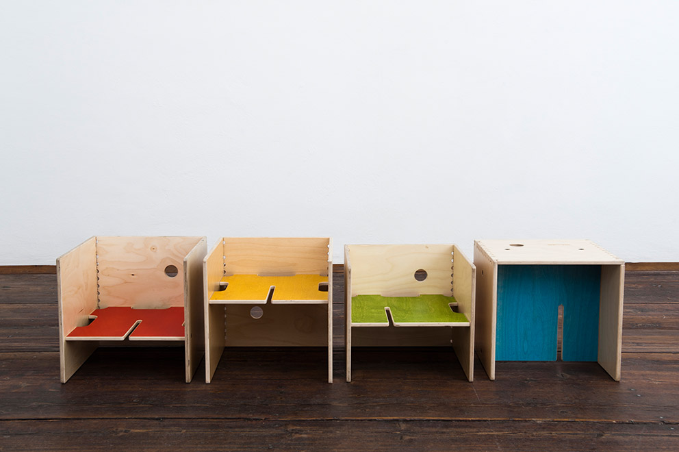 What would Max Bill, who designed the famous “Ulm Stool”, have said about this? This small item is a real blockbuster. The modular table/seat combination “MAXintheBox” by “perludi” for infants aged 10 months and upwards is made of ecological birch plywood. The cube is consciously plain, left in the original color of the wood. The seat, however, has a color lacquer to set a simple but impressive accent. Moreover, it can be set comfortably at four different heights. Two stools can be slotted together to form a cube and save space, meaning other variable uses arise, e.g., as a table or a storage surface for toys.