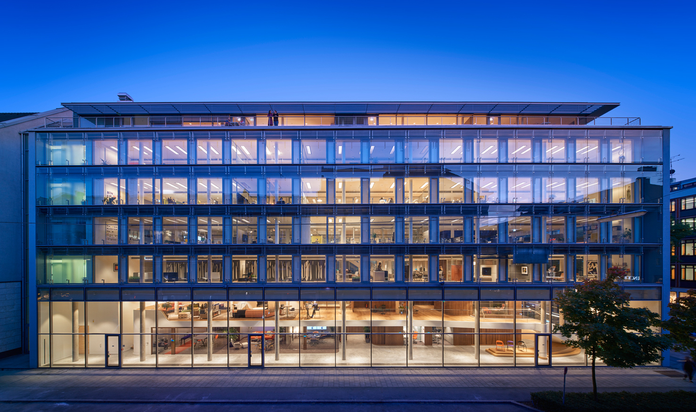 To design the three buildings making up the campus Steelcase joined up with Henn Architekten and Patrick Jouin of design duo Jouin Manku to pool skills. “We really enjoyed working in this interdisciplinary team with Steelcase to create innovative and pioneering working spaces that put people first,” comment Henn Architekten. The result: work spaces with a cozy atmosphere that offer staff numerous opportunities for choosing the right environment to suit the task at hand. There is a focus on communication and transparency with a centrally located “WorkCafé” that extends over two floors. In this way, rest and recreation can meld with meeting situations. Openness was also called for when locating the workplaces for executives: The “Leadership Community” on the first floor is a hub accessible for all employees. This not only encourages staff-management interaction, but also makes management more visible for the regular workforce. (am)