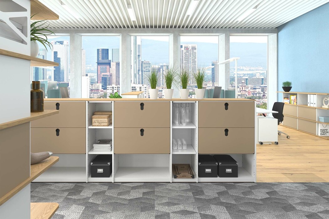 Hansruedi Beerli: Both. For example, you can use the furniture as a separating element in the office – and since employees may sometimes come together there to discuss something, we offer a standing height of 1094 millimeters in order to have eye contact. We also have a height of 1442 millimeters in our range, which is ideal for schools – especially in the lower school sector, where the children are still smaller. Then there is our standard height of 1790 millimeters. All three heights are based on a common grid and can be easily linked together. This then results in new design possibilities, such as a skyline-like arrangement of the individual elements.
