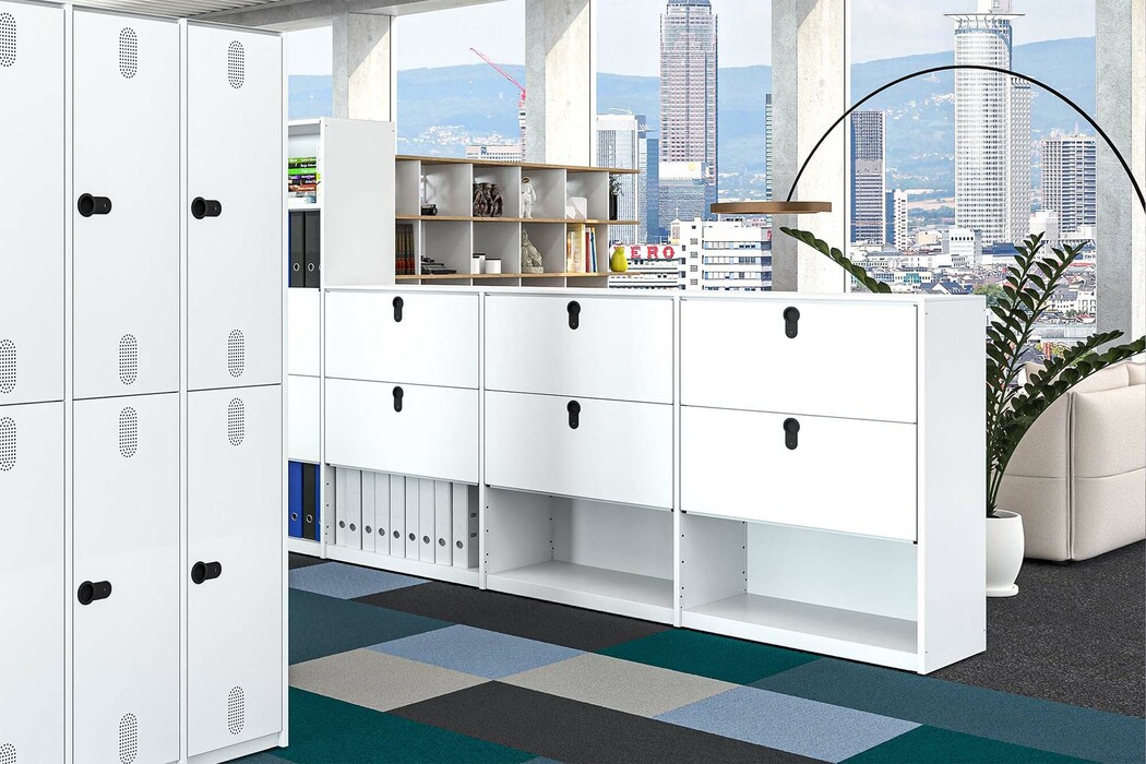 Hansruedi Beerli: The product configurator was created for defining the individual combinations of the range. There you can choose whether to start with a locker, a lock box or a wardrobe. This means that a wide range of combinations is then possible. For the lock boxes and the wardrobe, for example, the height and height division of the doors can be changed. However, the flaps for the lockers always have the same height, as it is derived from the standard height of file folders.